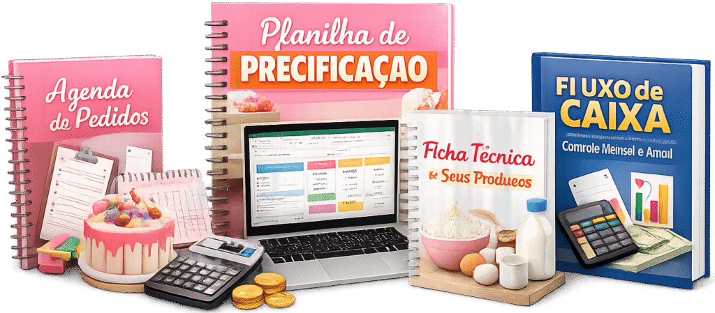 Uma planilha de precificação incrível e muito explicativa para você não errar na hora de colocar preço em seus Bolos Essa planilha é editável para que você possa preencher e organizar sua produção. Nela poderá colocar. O custo dos ingredientes O custo das formas 0 custo das embalagens O preço de venda O custo total de fabricação O lucro liquido no final. Você poderá editar e imprimir essa planilha, depois deixe-a em um local de fácil acesso para que possa preencher. dessa maneira poderá controlar cada etapa do seu negócio de Bolos Sofisticados