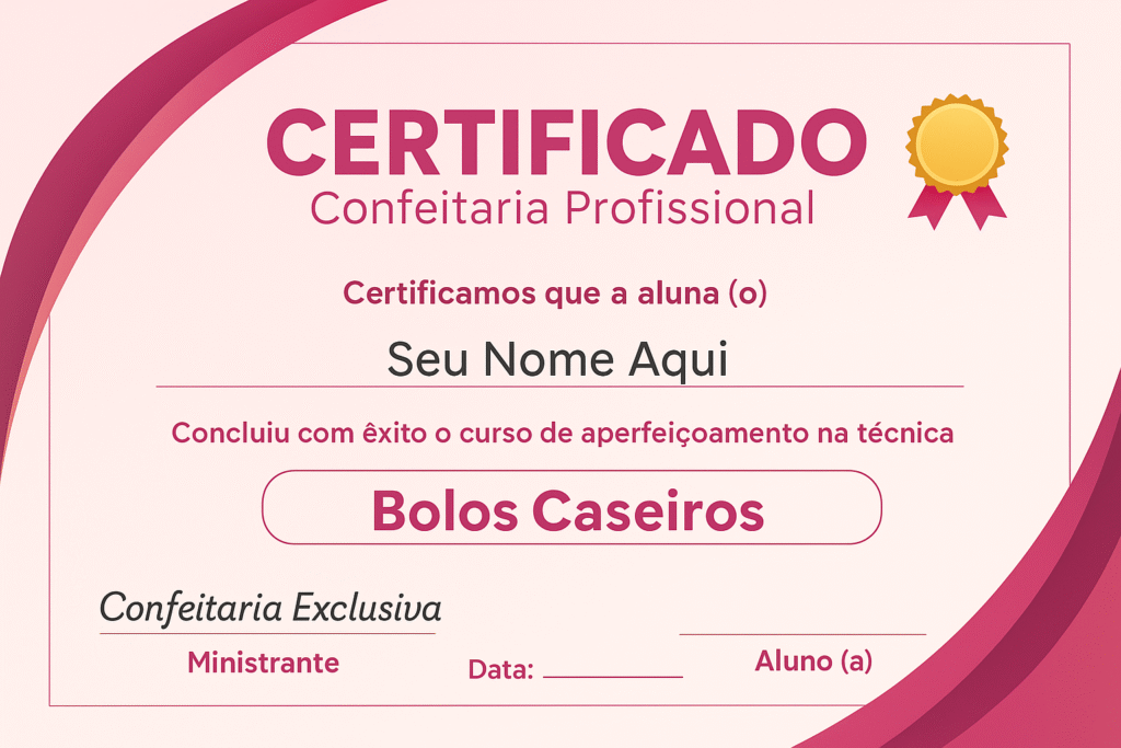Ao concluir, você receberá o seu certificado personalizado, com a merecida aprovação de competência, pronto para ser impresso e exposto em seu Negócio ou na sua Casa!